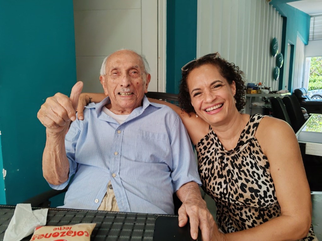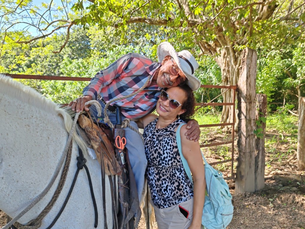 The next centenarian was the famous cowboy from the Netflix documentary. We went by his house at 7.15am and were told he left a good while ago to milk the cows. We arrived at the spot where he should be milking the cows, and it was quiet. The milk container was full. Now I was really intrigued. At the time that most people are just getting up this gentleman already had his first chore done. We continued driving when we saw someone on a horse, sitting straight up with his cowboy hat, herding his cattle. There he is, Jorge goes. No way I said, that can’t be a centenarian. Except it was. We pull up and Jorge jokingly tells him: “Hey buddy, we’re looking for a boyfriend for this lady” referring to me. “Well then, she doesn’t have to go very far” was his immediate answer. Ramiro, 102 years old, sharp as a tack and full of humor and pick-up lines. I had a long and pleasant conversation with him, where he told me about the many girlfriends he’s had, how he likes to drink “aguadulce” (his nickname for whiskey) regularly and how much he loves his life and work on the cattle farm. When asked if he’s happy his answer is a resounding yes! He’s worked his whole life and has no intention of stopping. “When will you stop working?” “The day I die”. Favorite food: “Gallo pinto y carne de chancho”(pork). Milk and eggs are also a staple in his diet. He had 7 children of which 6 are still alive. “Ramiro, what is your advice for the young people who want to reach your age?” “Work hard and don’t do drugs”.